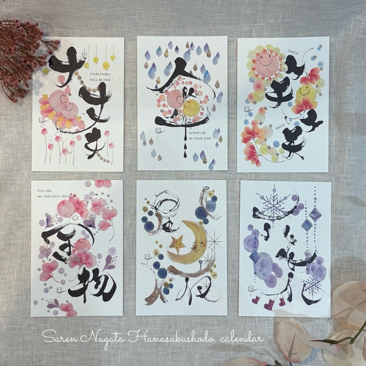 2025年秋のNew Postcardたち6枚をセットにしました。 「大丈夫」「傘」「笑笑」「宝物」「星月夜」「六花」
